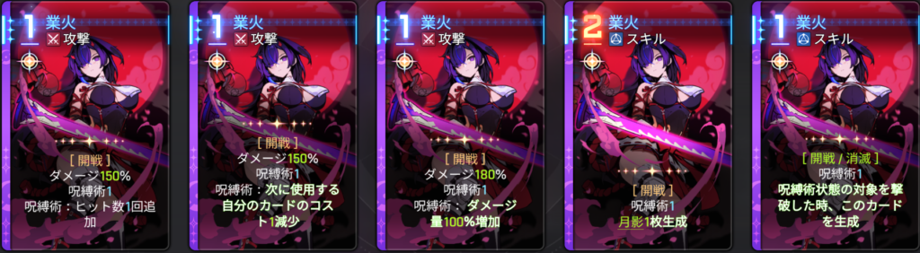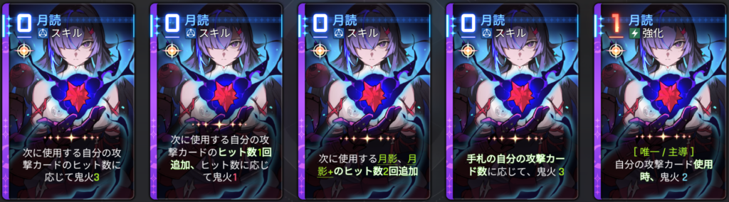 コピー推奨。鬼火を稼ぐのにも、月影のダメージをバフするのにも役立つ優秀カード。