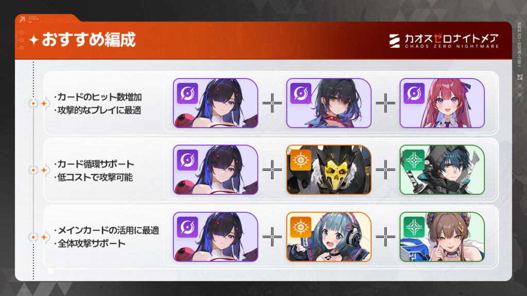 チズルは攻撃の手数が重要なため、0コス攻撃カードを生成できるキャラとの相性が良いです。