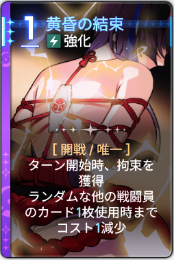 拘束:ターン開始または大破以外の手段によるアクションポイント獲得不可。月影、月影+ヒット数1回増加