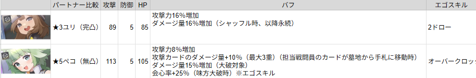 ★5ペコ(無凸)か★3ユリ(完凸)の2択。