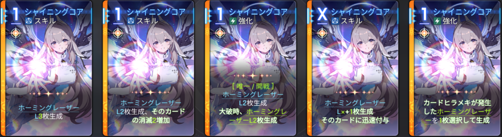 3番目が圧倒的におすすめ。初手で確実に残光バフを獲得できることに加え、大破時に追加でレーザーLを2枚生成できる効果が強い。