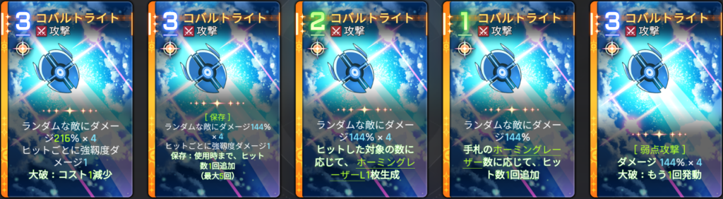 コバルトライトに関しては、大破するために使うか、大破後に火力を出したいかでおすすめのヒラメキが変わってきます。